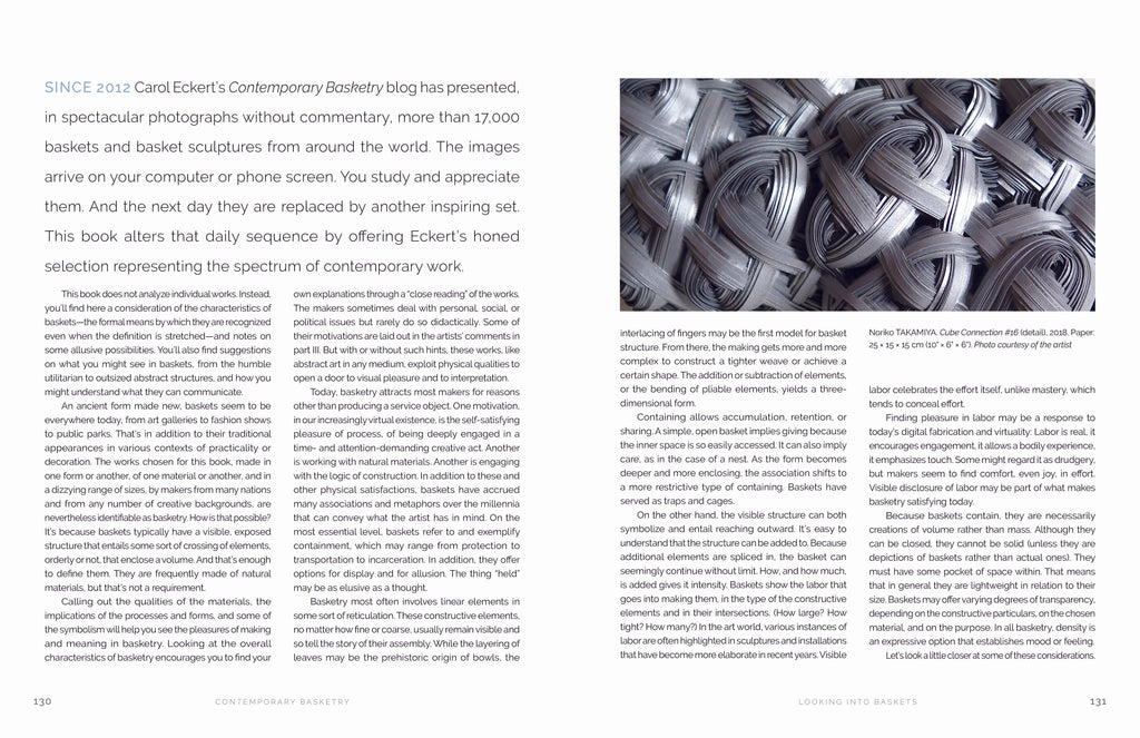 Carol Eckert has served as president of the National Basketry Organization and is the founder of the widely followed blog Contemporary Basketry. She is a contributor to many publications, including Rooted, Revived, Reinvented: Basketry in America (Schiffer). CarolEckert.com | @caroleckertart | contemporarybasketry.blogspot.com